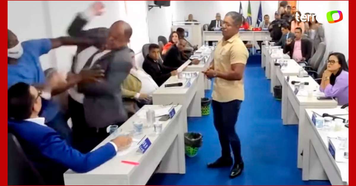 Vereador dá tapa em colega durante discussão em Câmara na Bahia: 'Você quer palanque'. A cena foi transmitida ao vivo nesta quarta-feira, 28, pela Câmara Municipal de Lauro de Freitas. A confusão ocorreu após o vereador Gabriel Bandarra (Novo) tecer críticas sobre a relação da presidente da Câmara e a prefeita do município. Na sequência, o vereador Loxa Lopes (PP) reagiu e rebateu as falas; seguranças chegaram a se aproximar, mas o parlamentar disse que não iria agredir o colega. Instantes depois, porém, Lopes dá um tapa em Bandarra e a sessão é suspensa; em vídeo publicado após a confusão, o vereador afirmou ter registrado um BO pela agressão.