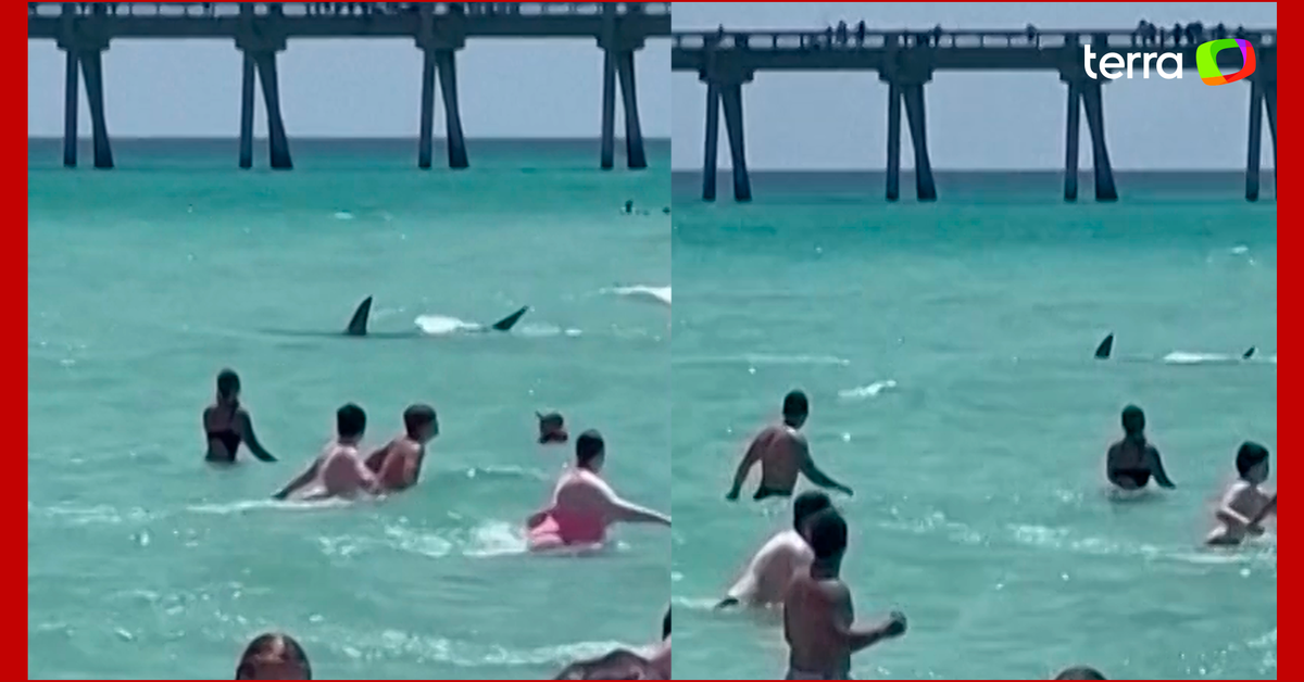 Tubarão é flagrado próximo a banhistas em praia na Flórida (EUA). Vídeo publicado nas redes sociais mostra o animal nadando na praia de Navarre, em Panhandle. Na cena, registrada na terça-feira, 4, a barbatana e o contorno do tubarão aparecem na água. Alguns banhistas percebem o animal e se dirigem para a praia, enquanto outros se arriscam permanecendo no mar. Nos EUA, uma onda de ataques de tubarão tem sido vista neste verão. Segundo o 'Tracking Sharks', até o início de junho foram ao menos 16 ataques, nove deles na Flórida.