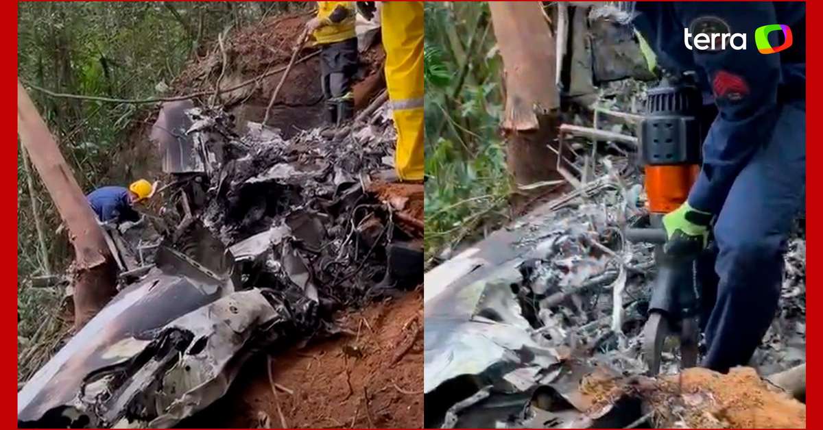Vídeos mostram destroços de avião que caiu em Santa Catarina