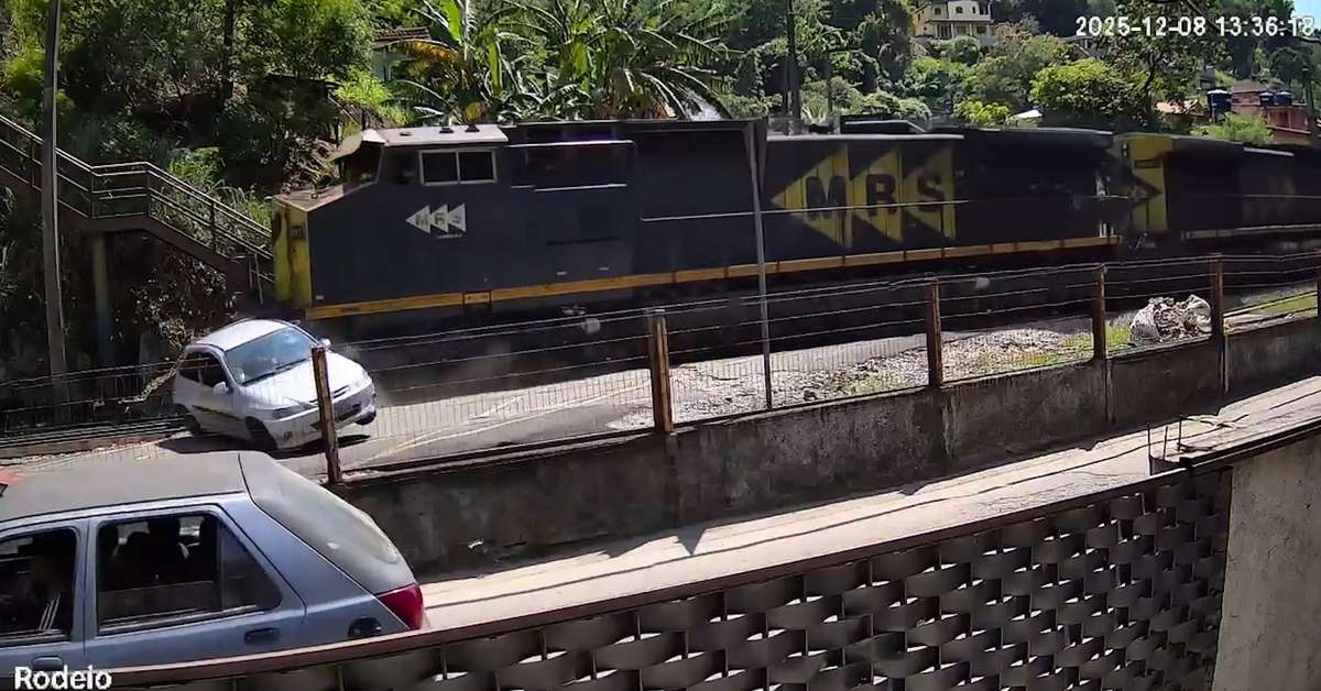 Carro atravessa trilho e é atingido por trem em Paulo de Frontin (RJ)