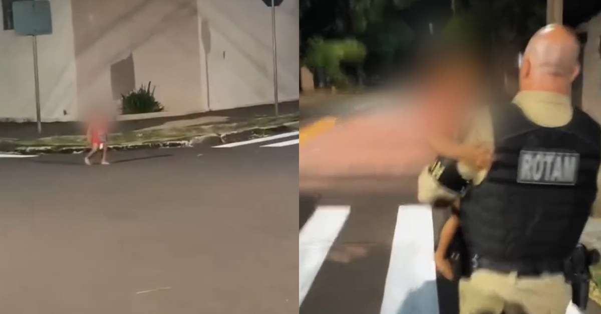 Criança de 2 anos é flagrada andando sozinha em rua e é devolvida por PMs para a família no PR. O caso, que ocorreu no município de Ourizona, foi divulgado pelo agente Hélio Carvalho na noite de quinta-feira, 4, em seu perfil nas redes sociais. Segundo a Polícia Militar, a criança estava descalça e usava apenas camiseta e fralda quando foi encontrada por volta das 22h vagando pelas ruas. Os PMs, então, começaram a rodar pelas ruas do local para encontrar a casa dos familiares; a mãe informou que não percebeu que a criança havia fugido. Reprodução/tenente.helio/Instagram