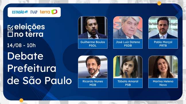 Na corrida eleitoral pela Prefeitura de São Paulo, os candidatos Guilherme Boulos (PSOL), José Luiz Datena (PSDB), Marina Helena (Novo), Pablo Marçal (PRTB), Ricardo Nunes (MDB) e Tabata Amaral (PSB) participaram nesta quarta-feira, 14, do debate promovido pelo Terra em parceria com o Estadão e a Fundação Armando Alvares Penteado (FAAP). Veja as frases mais marcantes do debate.