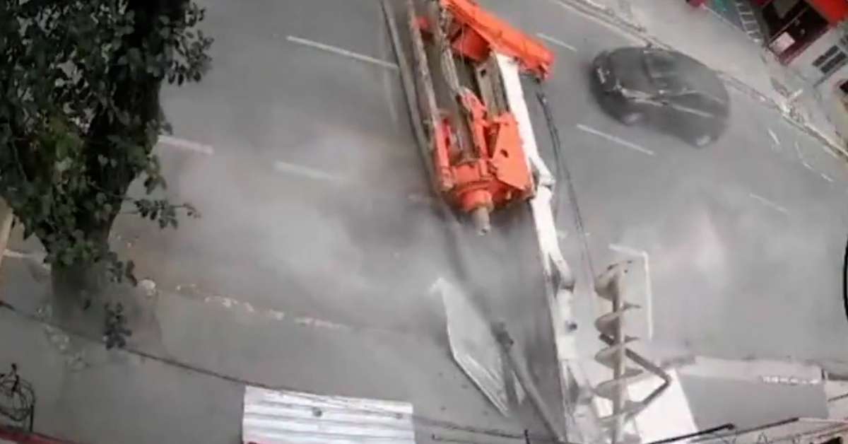 O caso foi registrado na manhã desta terça-feira, 26, na rua Jaguaribe, em Santa Cecília, na região central de São Paulo. Câmeras de segurança registraram o momento em que a máquina quase acerta um carro que havia acabado de sair de uma vaga. Em nota, a empresa responsável pelo canteiro confirmou o incidente e afirmou que não houve feridos. Segundo a companhia, a empresa responsável pela execução da obra tomou as medidas necessárias para garantir a segurança do entorno e apura as causas do ocorrido. Reprodução/alfinetadosdodia/X
