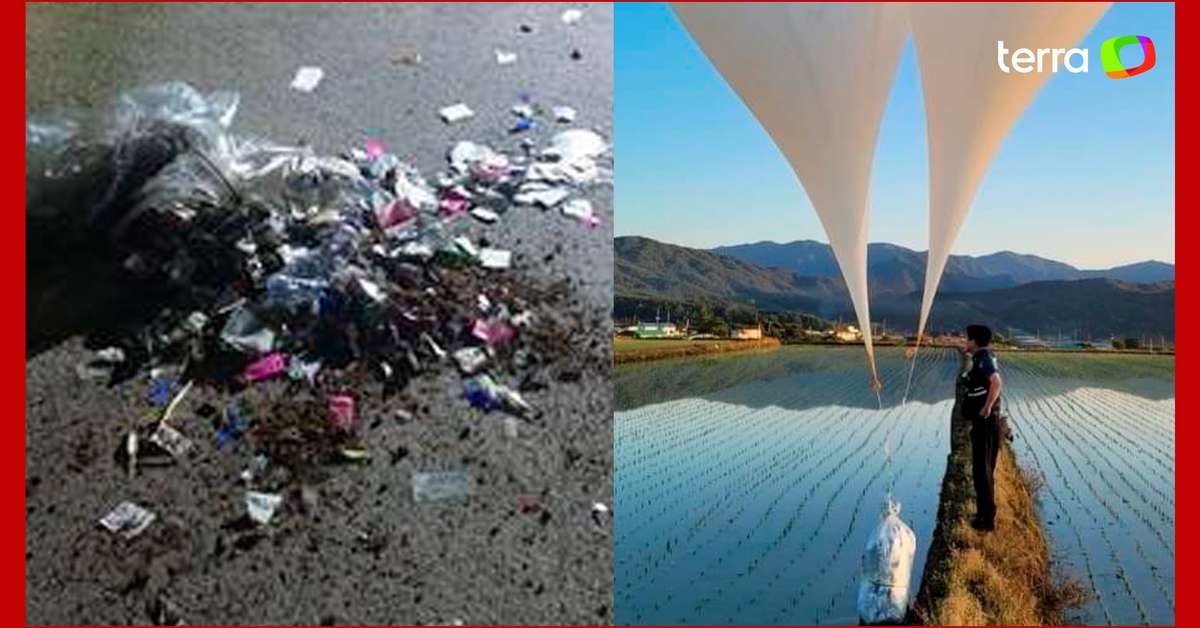 Imagens divulgadas por militares sul-coreanos nesta quarta-feira, 29, mostram parte dos cerca de 150 balões supostamente enviados pelo país. Os balões, transportando fezes e lixo como garrafas de plástico, baterias e peças de sapato, conseguiram chegar a uma província no sudoeste do país. As autoridades acreditam que o envio dos balões para a Coreia do Sul seja uma resposta a uma ação semelhante promovida por ativistas sul-coreanos e desertores da Coreia do Norte. Nos últimos anos, críticos ao regime de Kim Jong-un enviaram para a Coreia do Norte balões com panfletos contendo informações negativas sobre o governo.