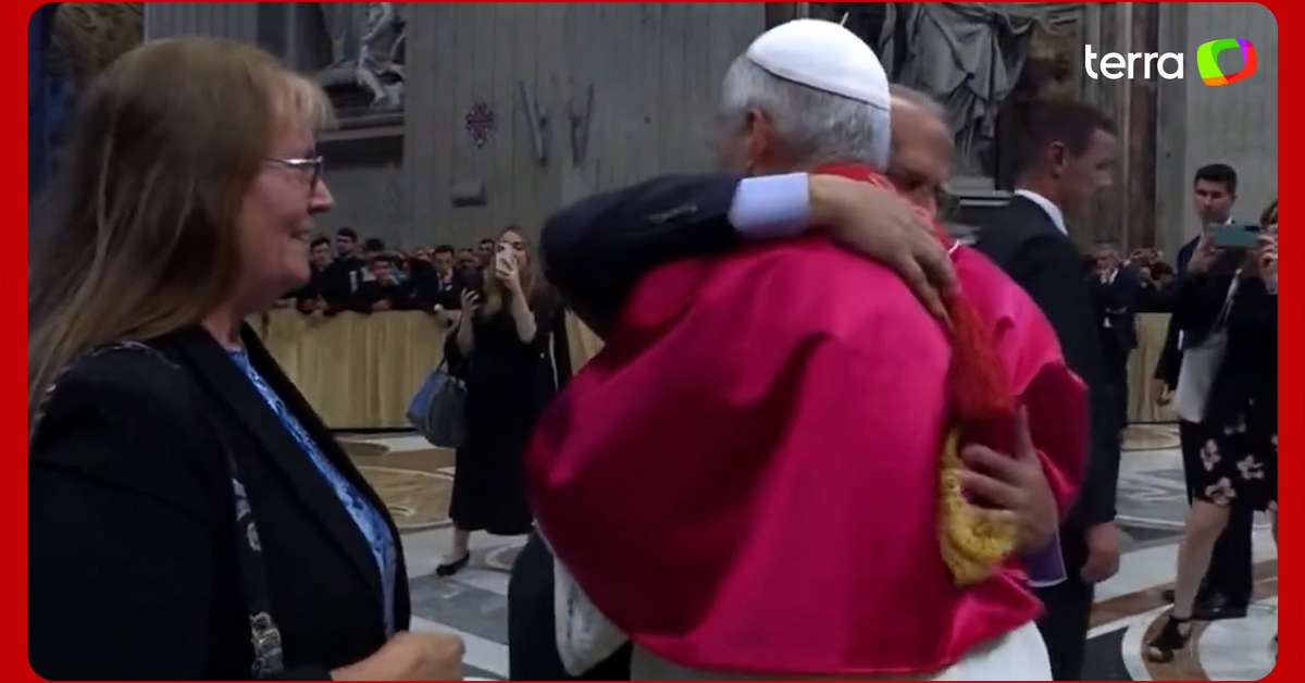 Papa Leão XIV quebra protocolo e abraça irmão durante missa inaugural no Vaticano. A cena carinhosa foi registrada no domingo, 18, quando Robert Prevost cumprimentava fiéis na celebração, que marcou o início do ministério do novo pontífice da Igreja Católica. Esta foi a primeira vez que os dois se encontraram após Robert ser eleito papa e escolher o nome de Leão XIV. Antes de viajar à Itália, Louis conversou com a mídia norte-americana e disse sentir muito orgulho do irmão. Reprodução/Vatican News