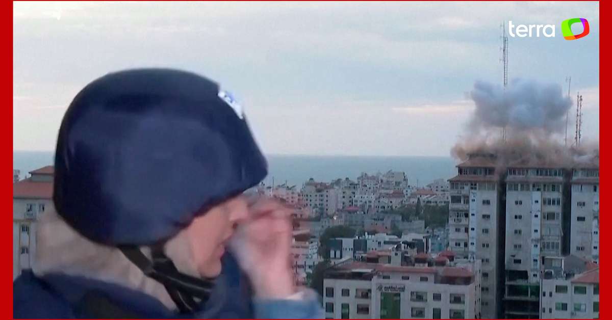 Repórter se assusta ao testemunhar ataque de míssil ao vivo em Gaza. Youma Alsayed, estava ao vivo na cidade de Gaza quando um míssil israelense atingiu um prédio atrás dela, no sábado, 7. A repórter inglesa da Al Jazeera gritou e se afastou enquanto tapava os ouvidos ao ouvir o barulho da explosão. Após o susto, ela continuou a relatar o ataque, quando seu colega pediu que ela parasse um momento para recuperar o fôlego.