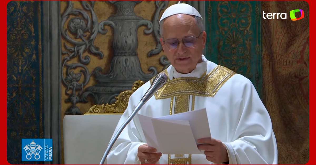 O novo papa, Leão XIV, celebrou nesta sexta-feira, 9, sua primeira missa como líder da Igreja Católica na Capela Sistina, no Vaticano. Todos os cardeais eleitores do conclave e os presentes em Roma assistiram à primeira missa, que começou às 11h no horário local (6h no horário de Brasília). O pontífice disse esperar que sua eleição ajude a "trazer luz às noites escuras deste mundo" e enfatizou que todos "somos chamados a testemunhar a fé alegre em Jesus". O papa ainda fez um apelo para autoridades da Igreja, pedindo um compromisso indispensável de "desaparecer para que Cristo permaneça”. A língua da celebração, como de costume, foi o latim. No entanto, a primeira e segunda leituras da missa 'pro ecclesia', foram em inglês e espanhol. Reprodução/Vatican News/YouTube