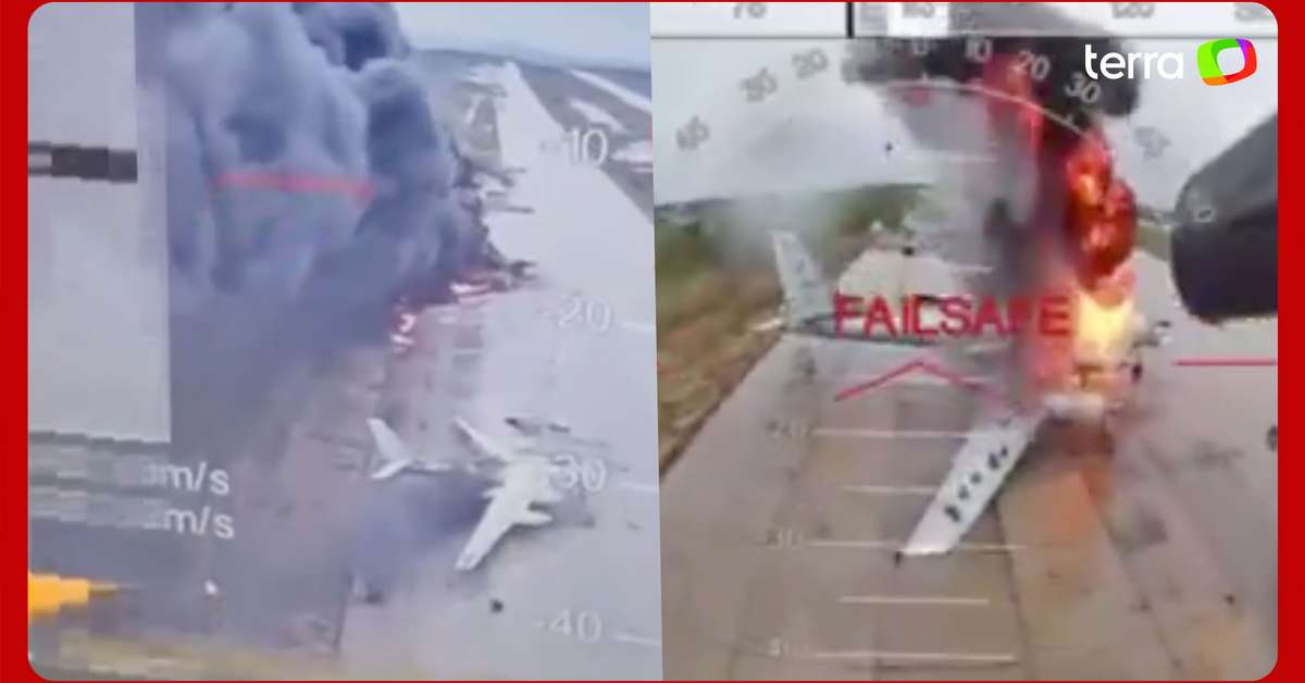 Ucrânia usa drones e destrói mais de 40 aviões em base militar russa na Sibéria. O ataque ocorreu neste domingo, 1º, a mais de 4 mil km do front, escala ainda mais as tensões entre os países, que estão em guerra há mais de 3 anos. Segundo a Reuters, este é o ataque com drones da Ucrânia mais destrutivo em todo o conflito e representa um revés significativo para a Rússia. Mais de 40 aeronaves foram destruídas, incluindo bombardeiros estratégicos Tu-95 e Tu-22, que a Rússia usa para disparar mísseis de longo alcance contra a Ucrânia. A operação transportou os drones armados com explosivos por caminhões para o território russo; os aparelhos estavam escondidos no teto de contêineres. No momento do ataque, um dispositivo remoto permitiu que os contêineres fossem abertos, liberando os drones; Zelensky, presidente da Ucrânia, chamou a operação de "brilhante". Reprodução/ChristopherJM/X Reprodução/ThomasVLinge/X