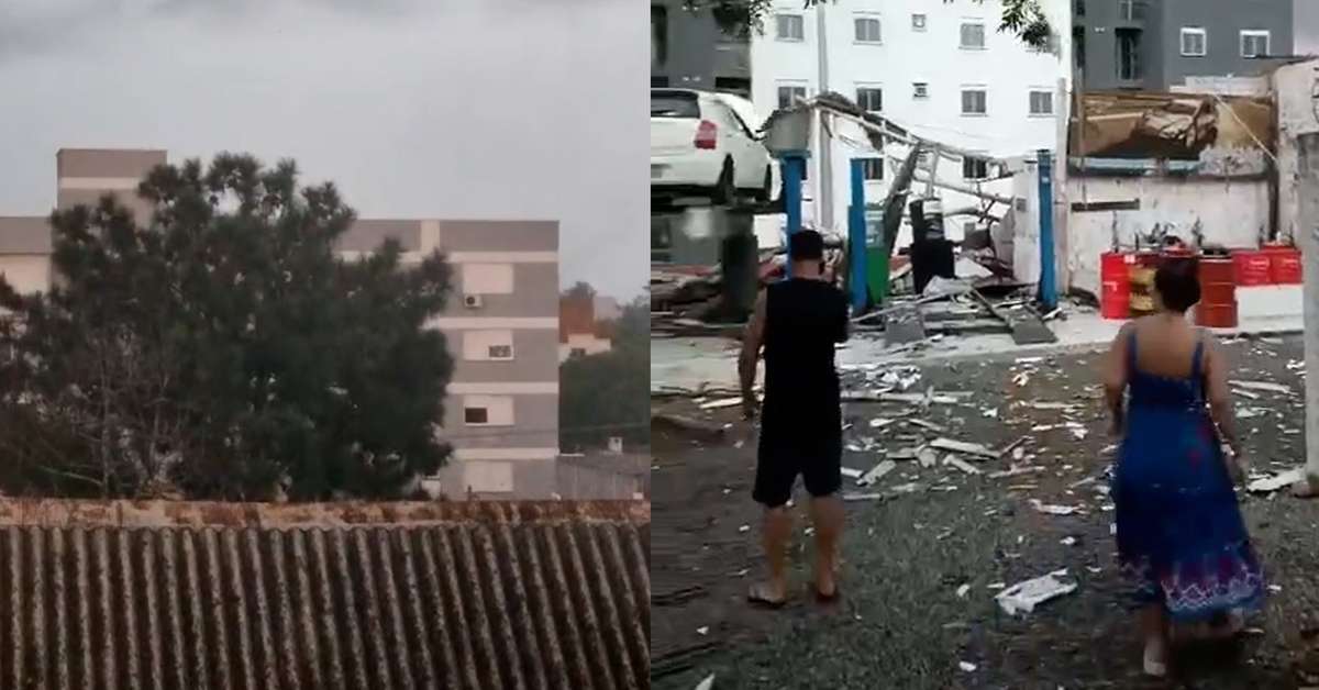 Tornado em Pelotas: Defesa Civil confirma passagem do fenômeno no RS. Moradores registraram as imagens na quinta-feira, 12, durante uma tempestade no município gaúcho. Os ventos de até 75 km/h destruíram uma oficina mecânica; o vendaval também destelhou casas e derrubou árvores. Apesar do susto, não há registros de feridos em função do fenômeno no Rio Grande do Sul. Reprodução/Pelotas Capas/Facebook Reprodução/Clima Extremo - Caçador de Tempestades/Facebook Reprodução/Cristiano Duarte/Facebook