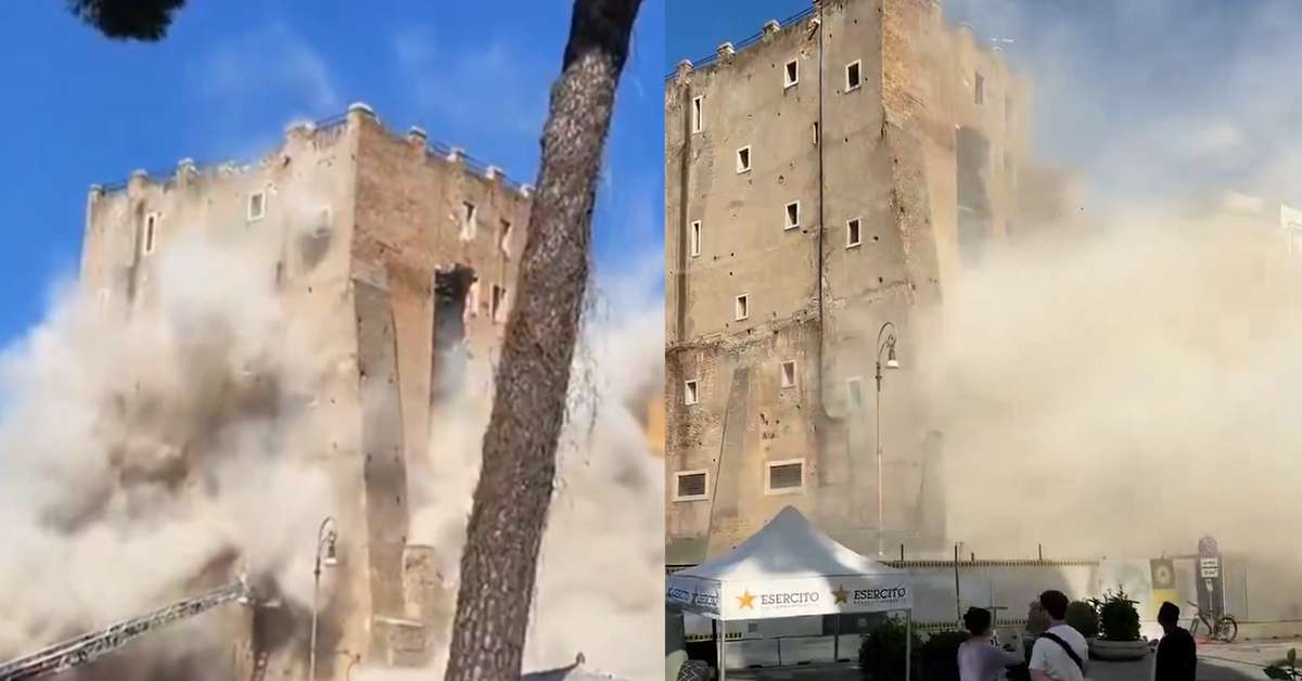 O incidente aconteceu nesta segunda-feira, 3, deixando uma pessoa ferida e outra presa nos escombros da estrutura. Nas imagens registradas por testemunhas, é possível ver o momento em que o imóvel colapsa enquanto bombeiros ainda trabalhavam no local. Segundo informações da Agência AFP, a Torre del Conti foi construída no século XIII e tem cerca de 29 metros de altura; ela passava por uma restauração. Reprodução/@antigua_roma/X Reprodução/@lucianonobili/X