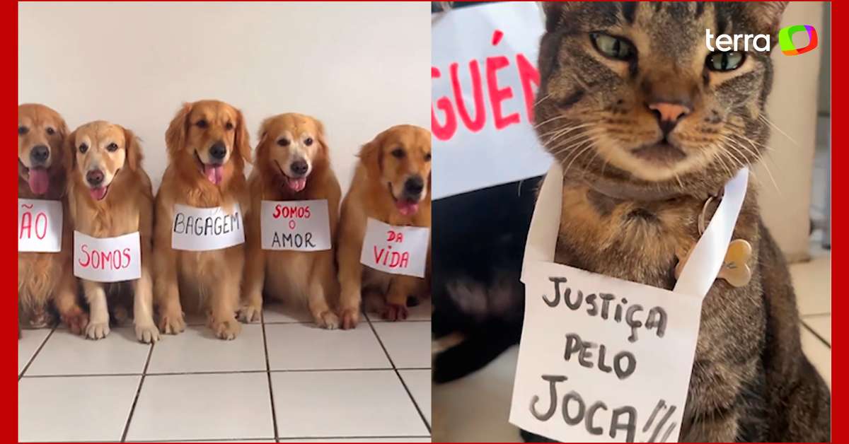 Tutora usa goldens para protestar nas redes e pede justiça pelo cão Joca. Manifestação foi feita após o caso da morte de um golden retriever em transporte aéreo. .Em solidariedade, a tutora dos 7 cachorros e gato fez um vídeo pedindo justiça. 'Não somos bagagem, somos o amor da vida de alguém', diz as plaquinhas. Nos comentários, os seguidores se emocionaram com a publicação.