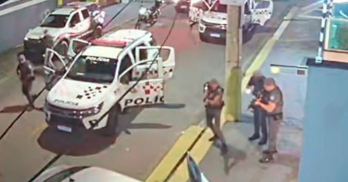 Vídeo mostra tiroteio que deixou PM e mais três mortos após assalto a farmácia no interior de SP. Uma câmera de segurança registrou o tiroteio, que ocorreu na madrugada deste sábado, 11, em Sorocaba. No vídeo, é possível observar que diversas viaturas interceptam um veículo que seria utilizado na fuga após um assalto a uma farmácia. Segundo a TV Tem, afiliada da TV Globo, o grupo tentava fugir levando cerca de R$ 3 mil em espécie e 63 medicamentos emagrecedores. No confronto, o policial militar Matheus Almeida Rodrigues, de 28 anos, foi atingido, socorrido, mas não resistiu aos ferimentos e morreu. Em nota, a SSP-SP lamentou a morte do agente e disse que um Inquérito Policial Militar será instaurado; o caso também é investigado pela Polícia Civil. #terranoticias Reprodução/Sargento Barbosa ROTA 1/Facebook