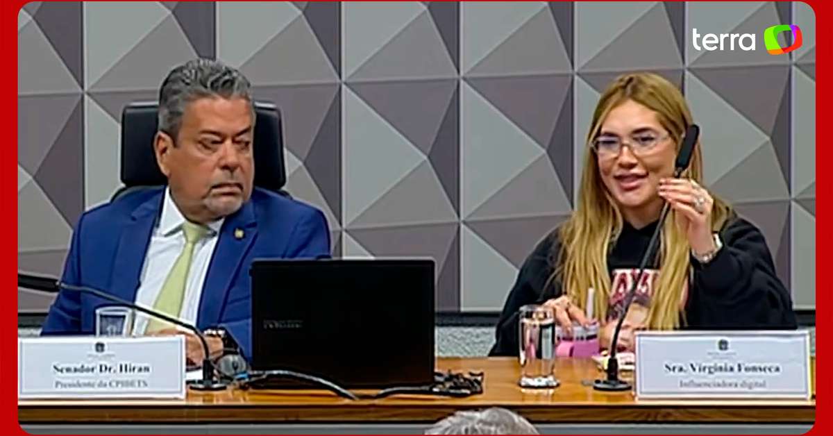 Virginia se confunde e coloca boca em microfone em vez de canudo durante CPI das Bets. A confusão ocorreu na tarde desta terça-feira, 13, enquanto ela dava seu depoimento. Ao perceber o equívoco, a influencer com mais de 50 milhões de seguidores riu da ação. “Aí não, chupei o trem (microfone)”, disse ela enquanto pegava a garrafa e ingeria o líquido. Reprodução/TV Senado/Youtube