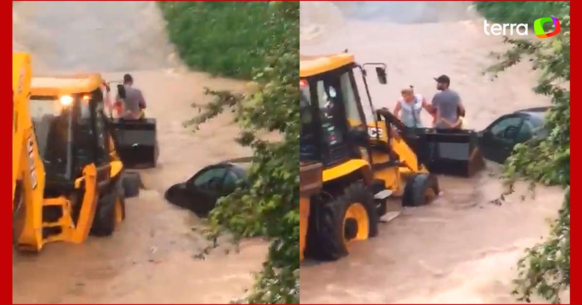 Família é resgatada por retroescavadeira após carro ficar preso em enchente em MG. A cena foi registrada nesta quarta-feira, 20, em Caeté, na região metropolitana de Belo Horizonte após fortes chuvas. Nas imagens, a família já aparece sendo retirada do local na concha do veículo; o carro onde estavam foi tomado pela água. Ninguém se feriu.