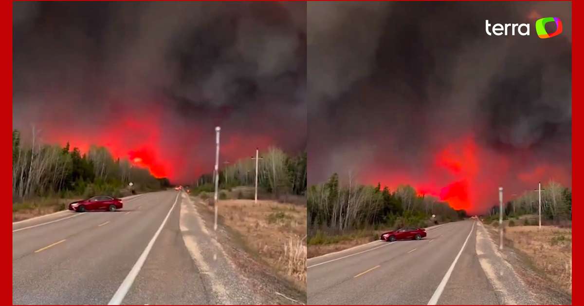 Incêndios florestais cobrem o céu de fumaça em estrada no Canadá