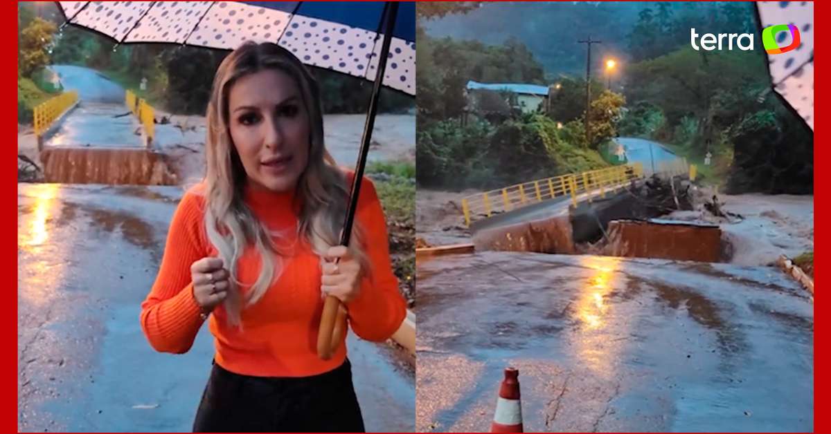 Uma ponte foi levada pela água durante gravação de prefeita em cidade do Rio Grande do Sul. O registro foi feito na manhã desta terça-feira, 30, em Santa Tereza, quando a Gisele Caumo (PP) gravava um vídeo informando sobre as chuvas que atingem a região. Ao fim da gravação, a força da água que passava ao fundo faz a ponte ceder e ser arrastada. Cidades do Rio Grande do Sul estão em alerta vermelho desde segunda-feira, 29, quando as chuvas se intensificaram. De acordo com o Inmet, a previsão é de chuva superior a 60 milímetros por hora, e há risco de alagamentos e deslizamentos de encostas.