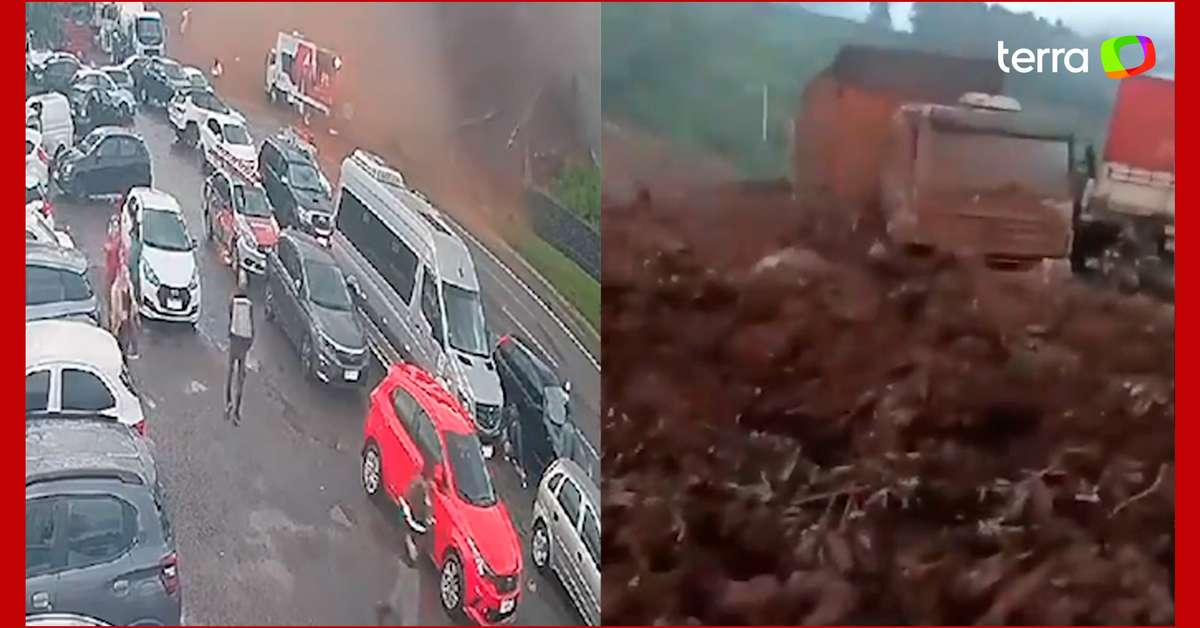 Temporal causa deslizamento de terra em rodovia no Rio Grande do Sul. O temporal que atinge o Estado causou um deslizamento de terra na ERS-122, em São Vendelino, na última terça-feira (30). Em vídeo que circula nas redes sociais, é possível ver o momento em que veículos são atingidos. De acordo com a Defesa Civil, quatro veículos foram atingidos e duas pessoas estão desaparecidas. O RS está em alerta vermelho, com registro de inundações e deslizamentos de terra em diversos municípios.