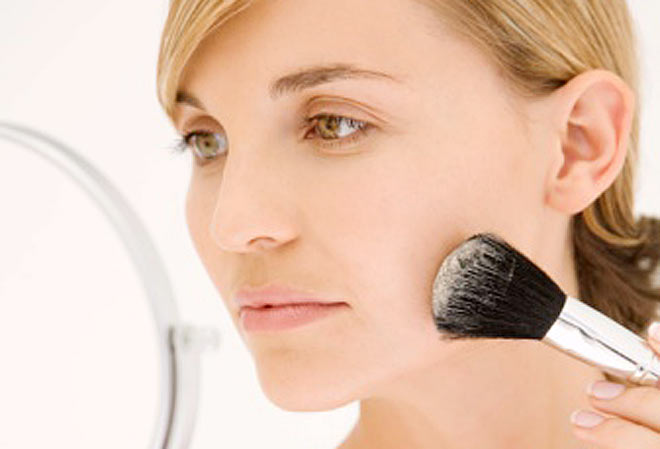 O formato do rosto influencia na maneira com que o blush deve ser espalhado. Os rostos largos, como o oval, o quadrado e o redondo, pedem o blush mais longo, aplicado próximo à orelha em direção à boca. O rosto redondo ainda precisa de um pouco de blush nas têmporas. Já para o rosto fino, o melhor é aplicá-lo na horizontal.