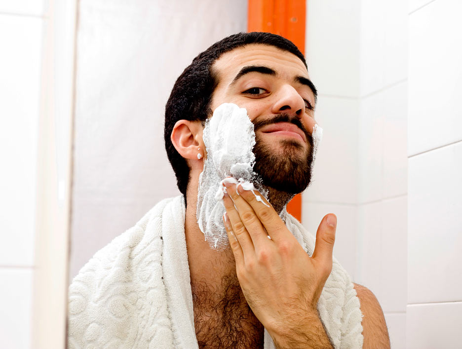 4O barbear também merece atenção com o uso de produtos certos que mantenham a hidratação da pele do rosto. Usar sabonete e hidratante adequados para o tipo de pele, e aplicar gel pós-barba com componentes anti-inflamatórios são importantes na rotina de cuidados.