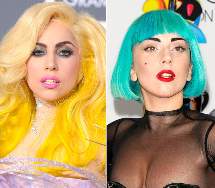 A cantora, que também é um ícone fashion, não poderia ficar de fora da enquete. Afinal, ela vive trocando a coloração dos fios e inovando no visual. Em janeiro de 2010, Gaga esteve na premiação do Grammy usando uma tonalidade amarela bastante vibrante em suas madeixas. Já este ano, durante uma premiação de moda, a cantora foi vista com fios azuis. Qual look você prefere?