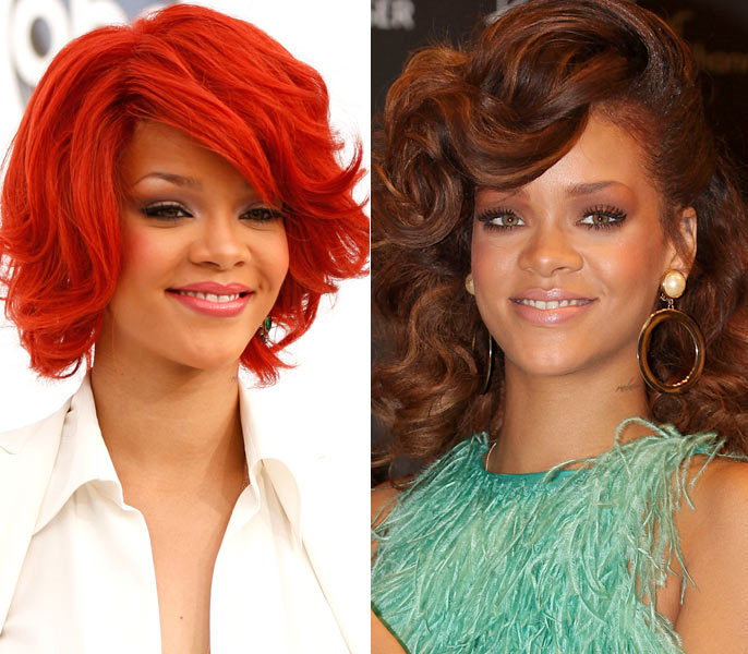 A cantora também não teme inovações e está sempre trocando o corte de cabelo e a coloração dos fios. Até julho deste ano, Rihanna era vista com fios tintos de vermelho vibrante, mas, em agosto, a cantora retomou a coloração castanha, com algumas mechas levemente avermelhadas. Como ela ficou mais bonita?