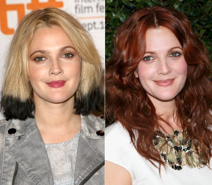 Em 2009, a atriz circulou com fios loiros tingidos de preto apenas na parte inferior, num look descontraído. Atualmente, Drew usa os fios tingidos de vermelho. Como você prefere?