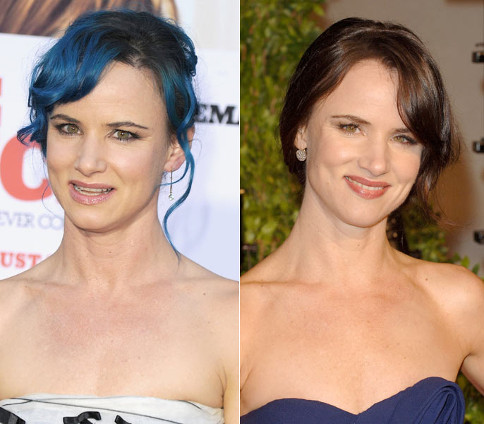 A atriz, que também é roqueira, pintou algumas mechas de azul no ano passado, na mesma época do filme Coincidências do Amor. Este ano, durante a festa do Oscar, Juliette surgiu no red carpet morena, sem os fios coloridos. Qual visual ficou mais legal?