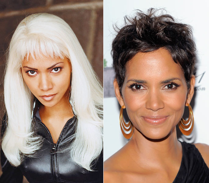 Para a série de filmes X-Men, a atriz adotou fios brancos e longos por causa de sua personagem. Na vida real, Halle usa os cabelos curtinhos e castanhos. Qual look você mais gosta?