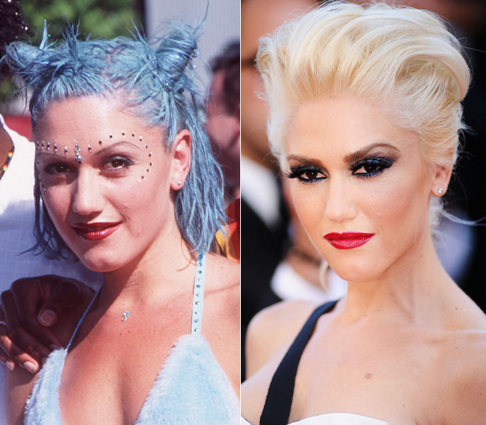 Em 1998, a cantora era praticamente outra pessoa! Em um evento da MTV norte-americana, ela apareceu com os cabelos tingidos de azul (até então ela usava os fios cor-de-rosa) e cristais decorando o rosto. Durante o Festival de Cinema de Cannes deste ano, que aconteceu em maio, Gwen estava elegante e com os fios descoloridos. Qual look combina mais com ela?