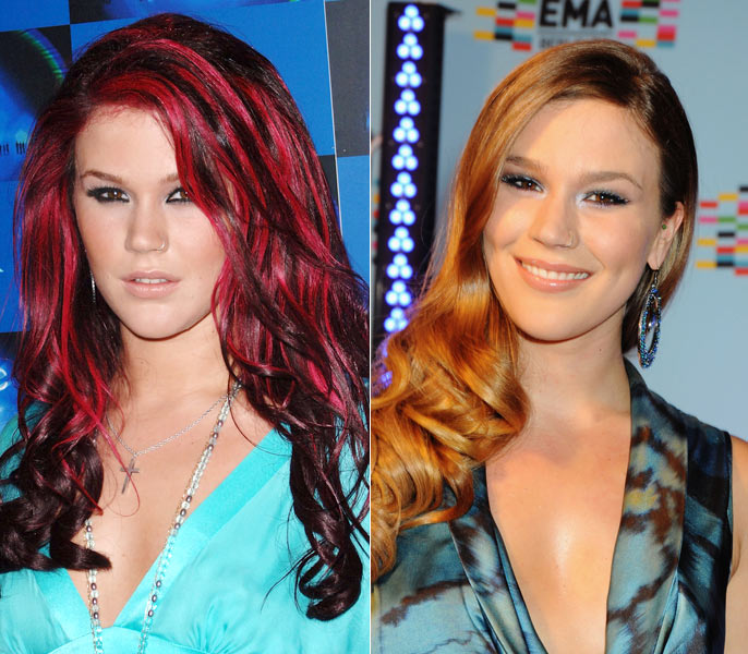 Em 2007, a cantora desfilava com diversas mechas cor-de-rosa entre seus cachos castanhos. Quatro anos depois, Joss usa os fios no tom castanho-claro, sem as mechas coloridas. Como ela fica melhor?