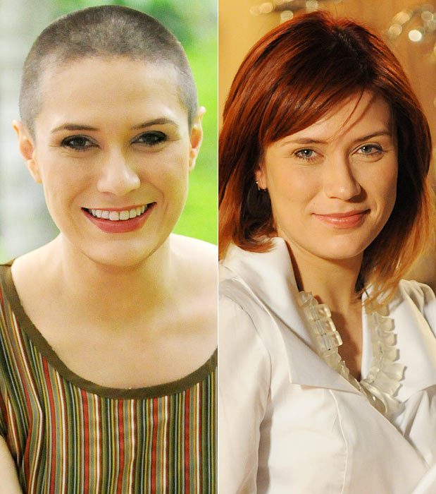 Na época da novela Laços de Família, a atriz precisou raspar as madeixas para dar vida à Camila, uma garota que sofria de leucemia e que comoveu o País com sua história. Em 2011, Carolina escureceu os fios para viver Diana em Passione. Como ela fica melhor?
