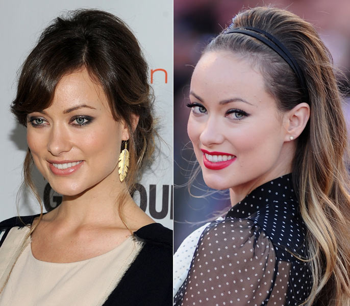 Para uma festa, a atriz fez um make priorizando os olhos, com blush discreto, e prendeu os cabelos deixando alguns fios soltos, combinando com brinco médio e dourado. Em outro evento, Olivia deixou as madeixas soltas, usou batom vermelho e um discreto brinco de pérolas. Qual look foi mais legal?