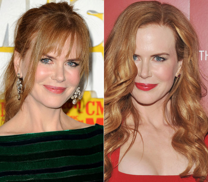 Com os cabelos ruivos soltos e boca vermelha, a atriz escolheu um brinco pequeno e de pedra rubra para ornar com o traje que estava vestindo. Em outra festa, com os fios presos, Nicole usou brincos médios de pedra transparente, que valorizou o azul de seus olhos. Como ela ficou mais bonita?