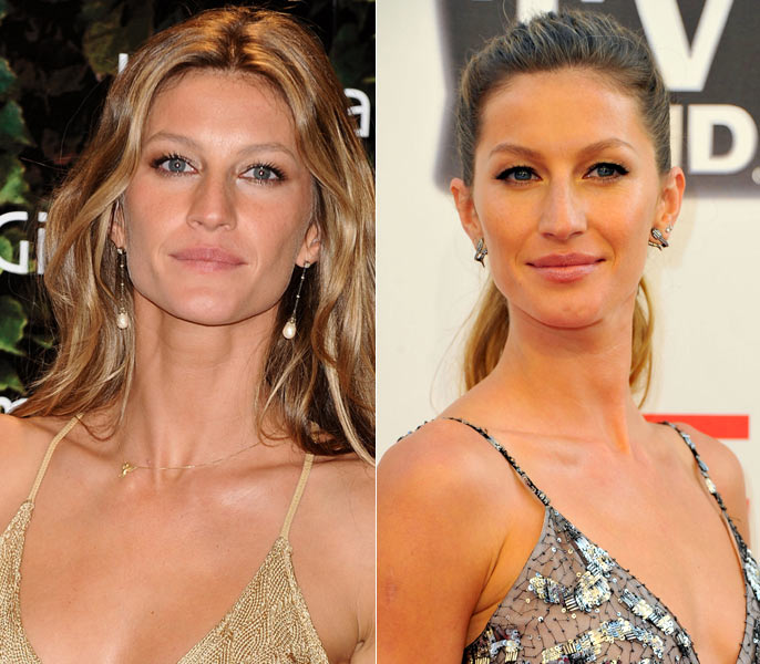 A über model tem pescoço longo, pele clara e olhos verdes e foi a uma festa com um pendente médio, de ouro amarelo com pedras discretas e gota de pérola, combinado aos cabelos soltos e gargantilha discreta. Para outra ocasião, na qual usou cabelos presos e brinco pequeno e prateado. Gisele ficou melhor com qual combinação?