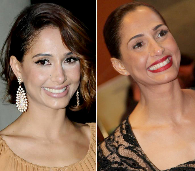 Com fios soltos e olhos esfumados, Paola usou um brinco de argolas médias e prateadas para ir a um evento. Quando prendeu os fios e usou um vestido brilhante, a atriz delineou bem os olhos e usou um brinco longo e negro. Qual você prefere?
