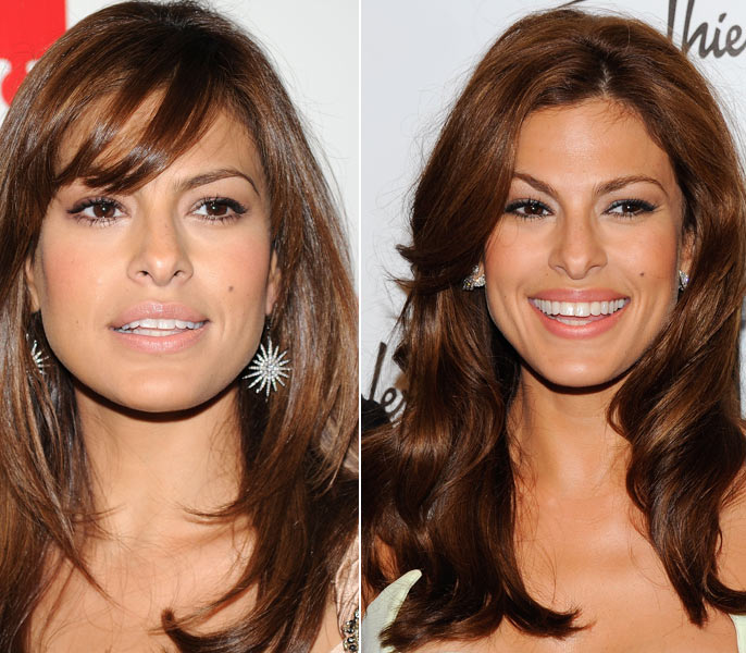 Em abril de 2010, a atriz apareceu com franja, que usava lateralmente na testa. Um ano depois, Eva abandonou o penteado, deixando o rosto totalmente livre. Como você prefere?