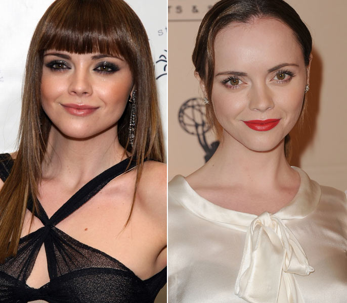 Em dezembro de 2010, Christina Ricci adotou fios bem lisos e compridos e uma franja reta que cobria sua testa. Seis meses depois, o look foi abandonado e a atriz foi vista com fios repartidos ao meio e ondulados. Ela ficou melhor como?