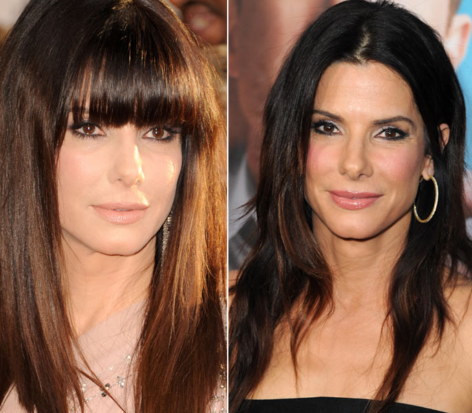 Em janeiro, Sandra compareceu à festa do Globo de Ouro com uma franja volumosa e reta, sobre os olhos. Atualmente a atriz desfiou as laterais do cabelo e dispensou a franja. Ela ficou melhor como?