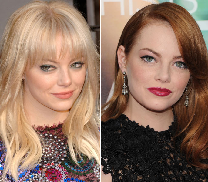 A atriz também não tem medo de ousar. Em fevereiro, com os fios descoloridos, Emma foi vista com uma franja volumosa e fios repicados. Cinco meses depois, ela retomou a coloração ruiva e passou a usar a franja longa disposta na lateral da cabeça. Qual franja ficou melhor?