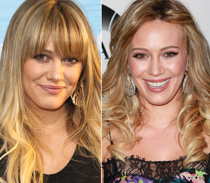 Em março deste ano, a cantora e atriz foi vista com fios escovados e uma franja volumosa e reta sobre a testa. Dois meses depois, Hillary compareceu a um evento com cachos e sem franja. Como ela ficou melhor?