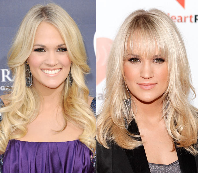 A cantor country circulou sem franjas até o começo deste ano. Atualmente, Carrie pode ser vista com uma franja reta, na altura das sobrancelhas. Qual visual ficou melhor nela?