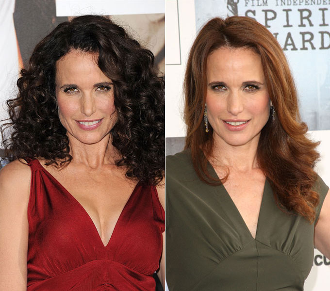 Outra atriz com os fios naturalmente cacheados e volumosos, Andie McDowell também aposta na escova quando quer inovar para alguma pré-estreia. Como ela ficou melhor?