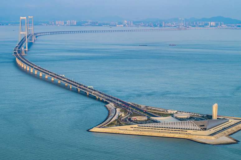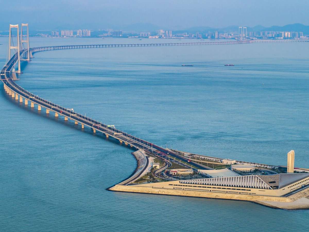 Conectando as cidades de Shenzhen e Zhongshan, separadas pela Baía de Guangdong-Hong Kong-Macau, essa ligação marítima de mais de 20 km consiste em duas pontes, duas ilhas artificiais e um túnel subaquático de última geração.