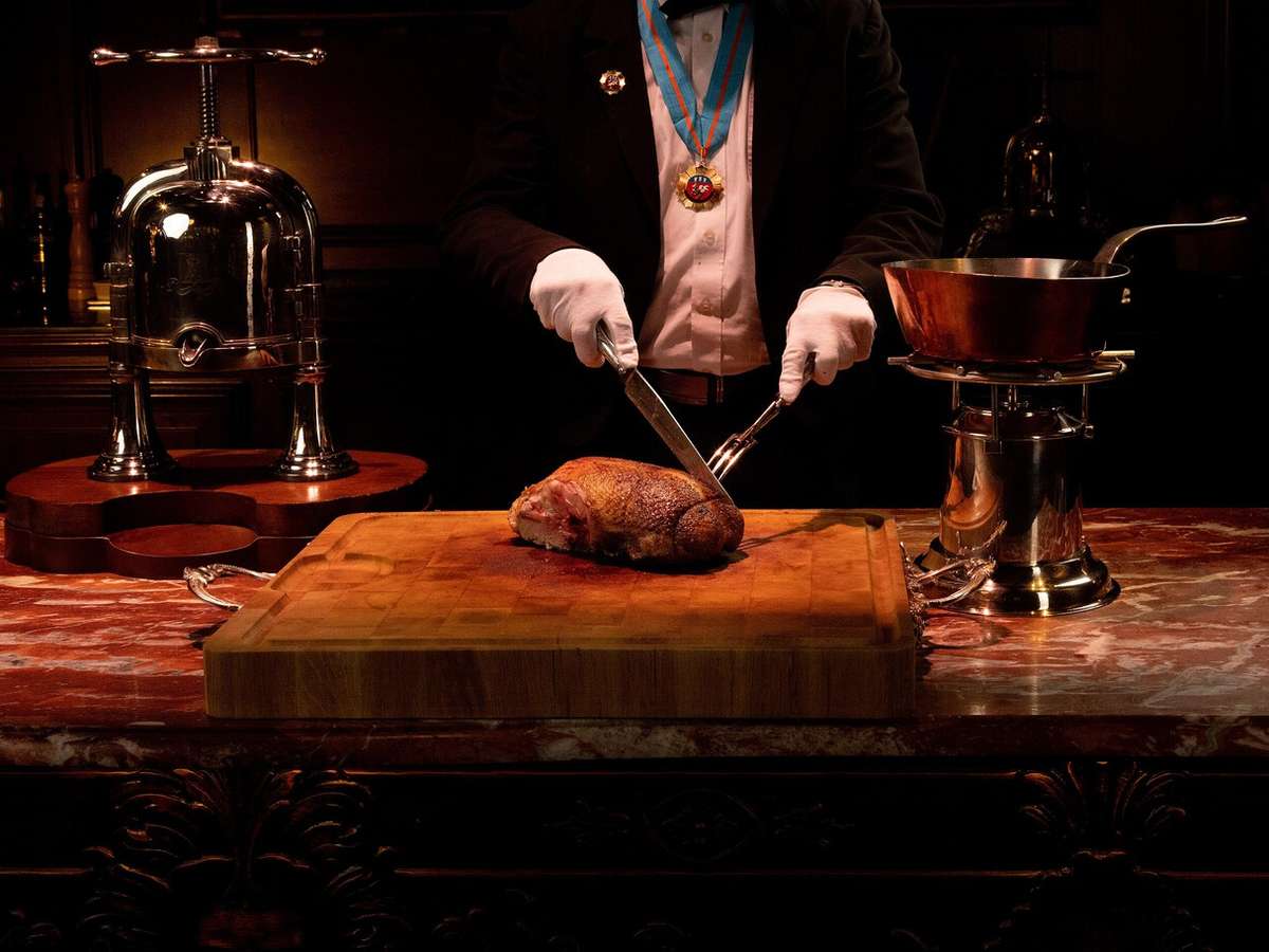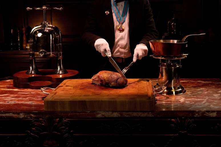 O prato, originado na região da Normandia, é caracterizado por sua preparação teatral: um pato parcialmente assado, cuja carcaça é prensada em uma máquina de prata ornamentada para extrair seu sangue e sucos, os quais se tornam o emblemático sauce au sang (ou molho de sangue). Esse molho, preparado diante do comensal por um maître, acompanha os filés de pato, enquanto as pernas assadas são servidas como um segundo prato. Digamos que, mais do que um manjar, o canard à la presse é uma experiência imersiva na pompa da alta culinária francesa que alcançou seu auge no século 19.
