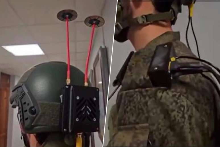 Em vídeo publicado nas redes sociais, um soldado russo mostrou um dispositivo compacto integrado ao seu equipamento. O sistema consiste em um módulo com duas antenas acopladas ao capacete, um arnês para conexões, um visor montado no antebraço e uma bateria de energia....