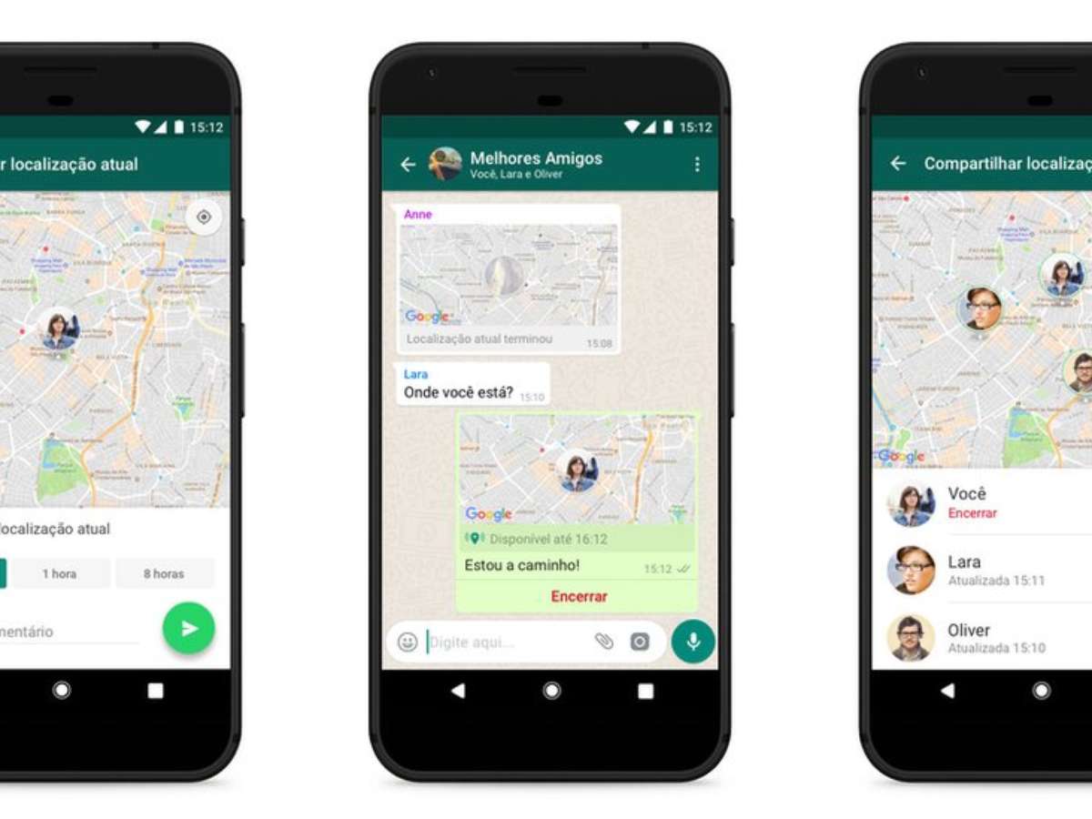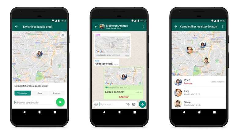 No caso das conversas em grupo, todos os participantes poderão acompanhar o deslocamento em tempo real. Se mais de um fizer o compartilhamento, eles aparecerão simultaneamente no mesmo mapa.
