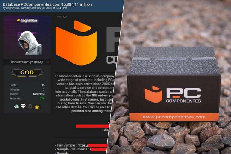 "Um terceiro utilizou endereços de e-mail e senhas obtidos em violações de segurança em bancos de dados comprometidos, sem relação com a PcComponentes. A partir desses bancos de dados — que geralmente são publicados em fóruns da internet — os atacantes testam automaticamente e em massa essas combinações de login em múltiplas plataformas.