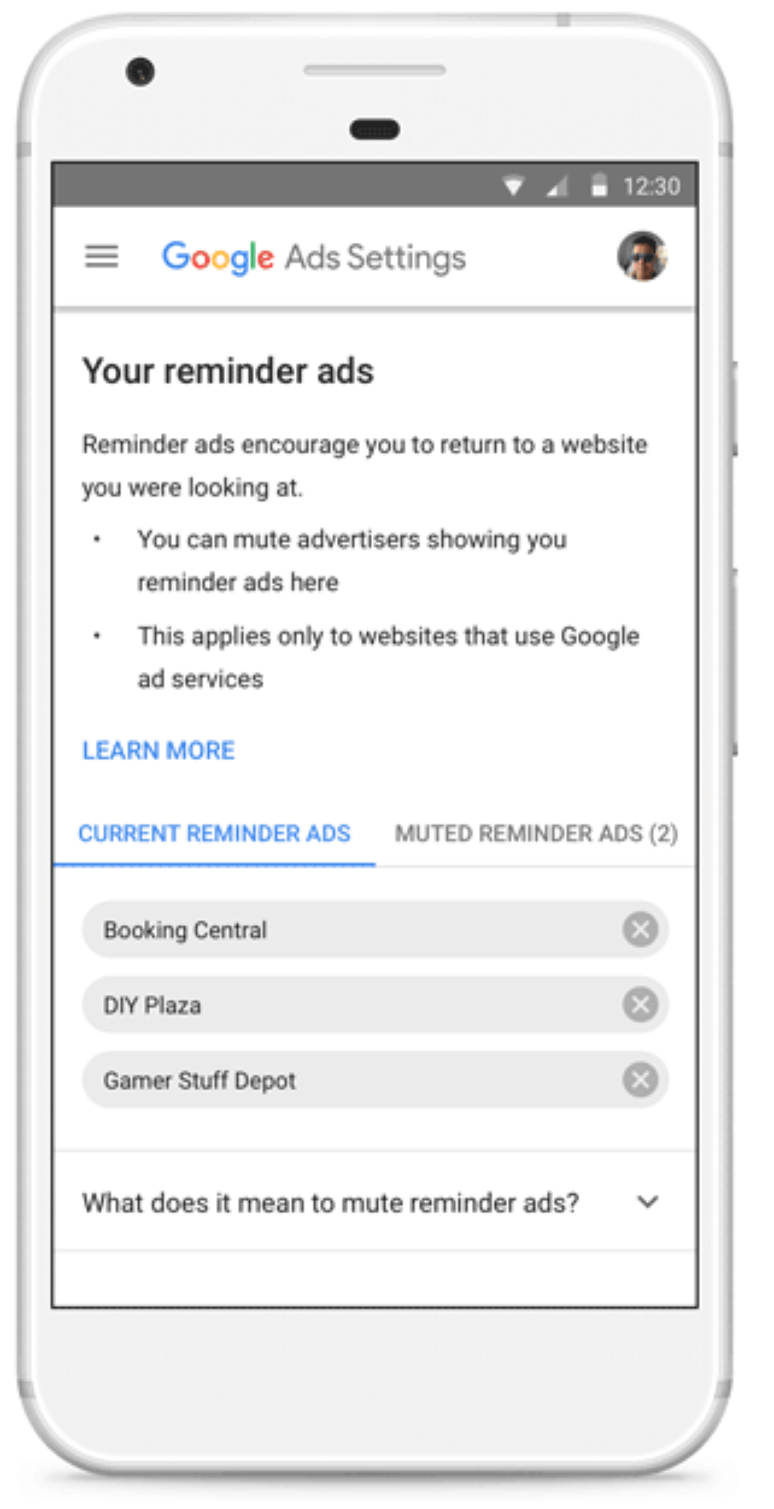 E novas funções nas Configurações de Anúncios chegam com a atualização. Ao selecionar "Remover esse anúncio", é possível dizer que aquele anúncio você não deseja mais visualizar. Por exemplo, quando visitar um e-commerce de sapatos em busca de novos chinelos, mas acaba desistindo da compra, "o site que visitou pode mostrar anúncios que o inventive a voltar e comprar aqueles chinelos", conforme explica a Google, "mas se você não está mais procurando chinelos, então não precisa de um lembrete sobre eles". O mesmo vale para os produtos que você já comprou e, logo, não deseja comprar a mesma coisa pela segunda vez.