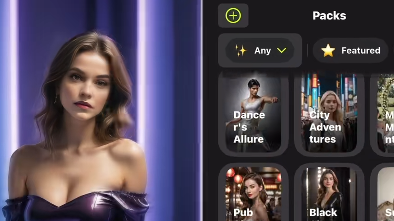 O desenvolvedor oferece "pacotes" prontos, com diferentes tipos de poses — incluindo cenas que retratam mulheres no chão com a boca aberta ou tomando banho.