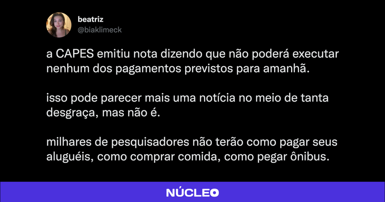 a CAPES emitiu nota dizendo que não poderá executar nenhum dos pagamentos previstos para amanhã.